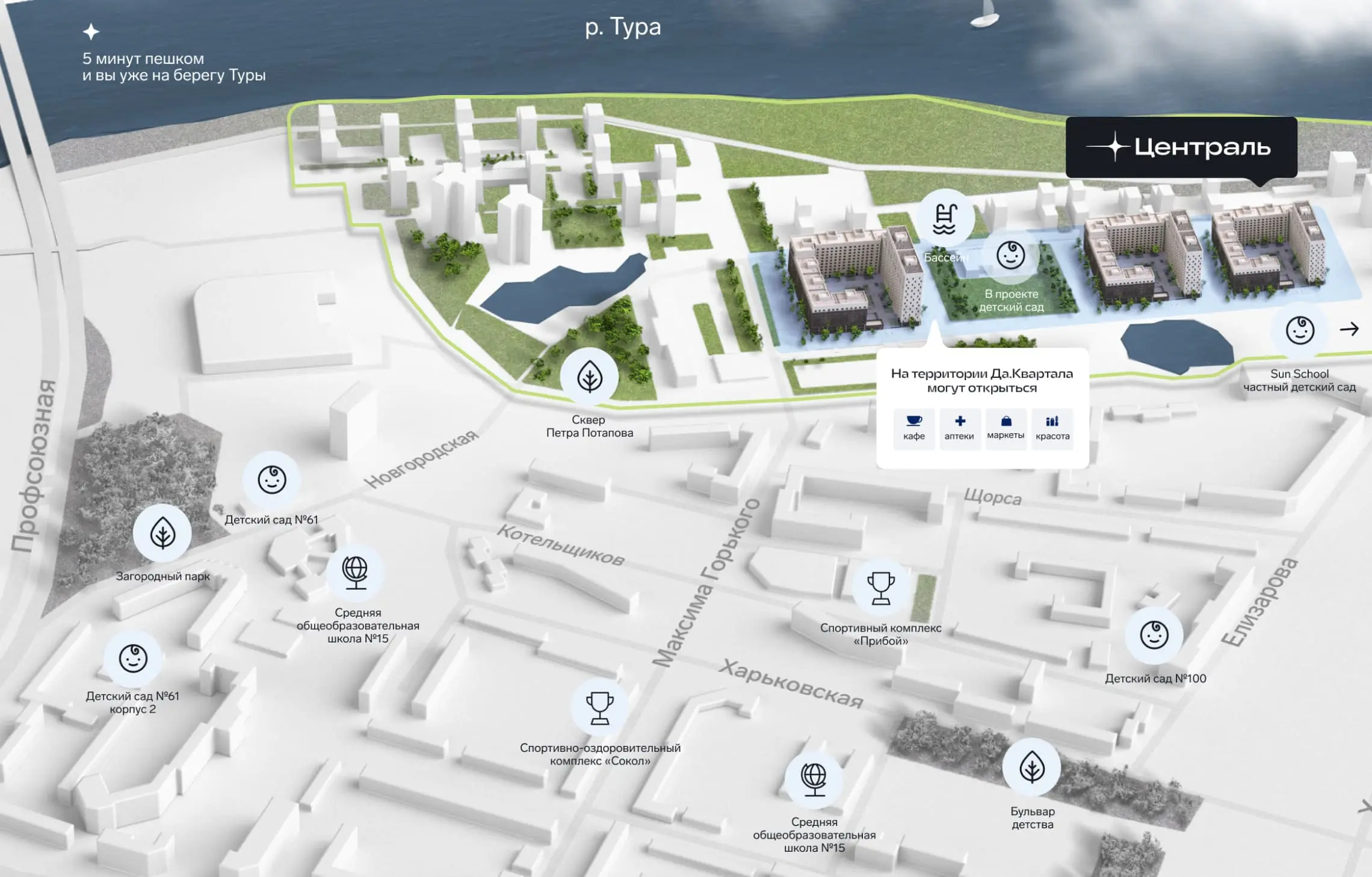 Здесь получится сократить поездки на машине. Школы, секции и торговые центры — на расстоянии приятной прогулки.