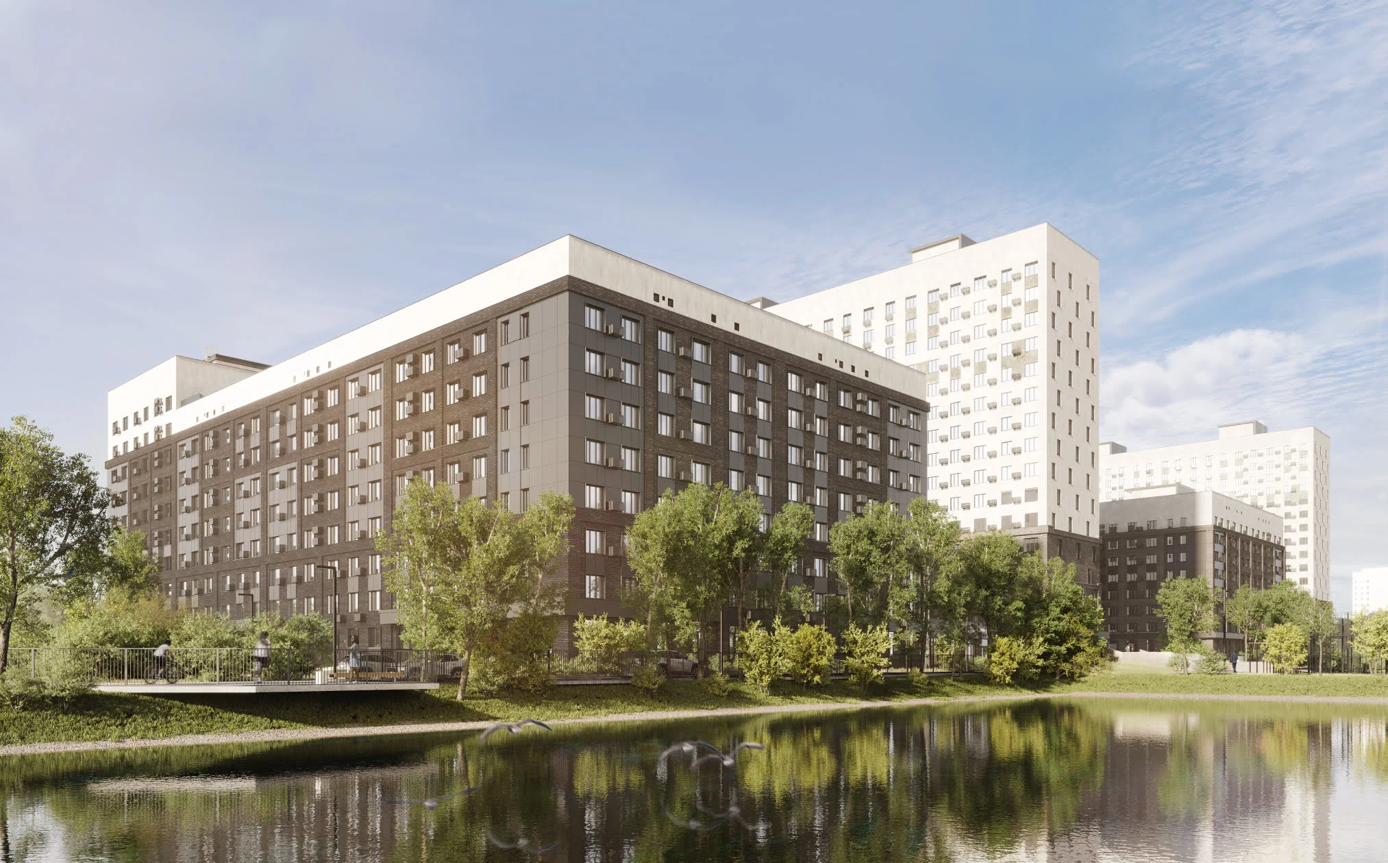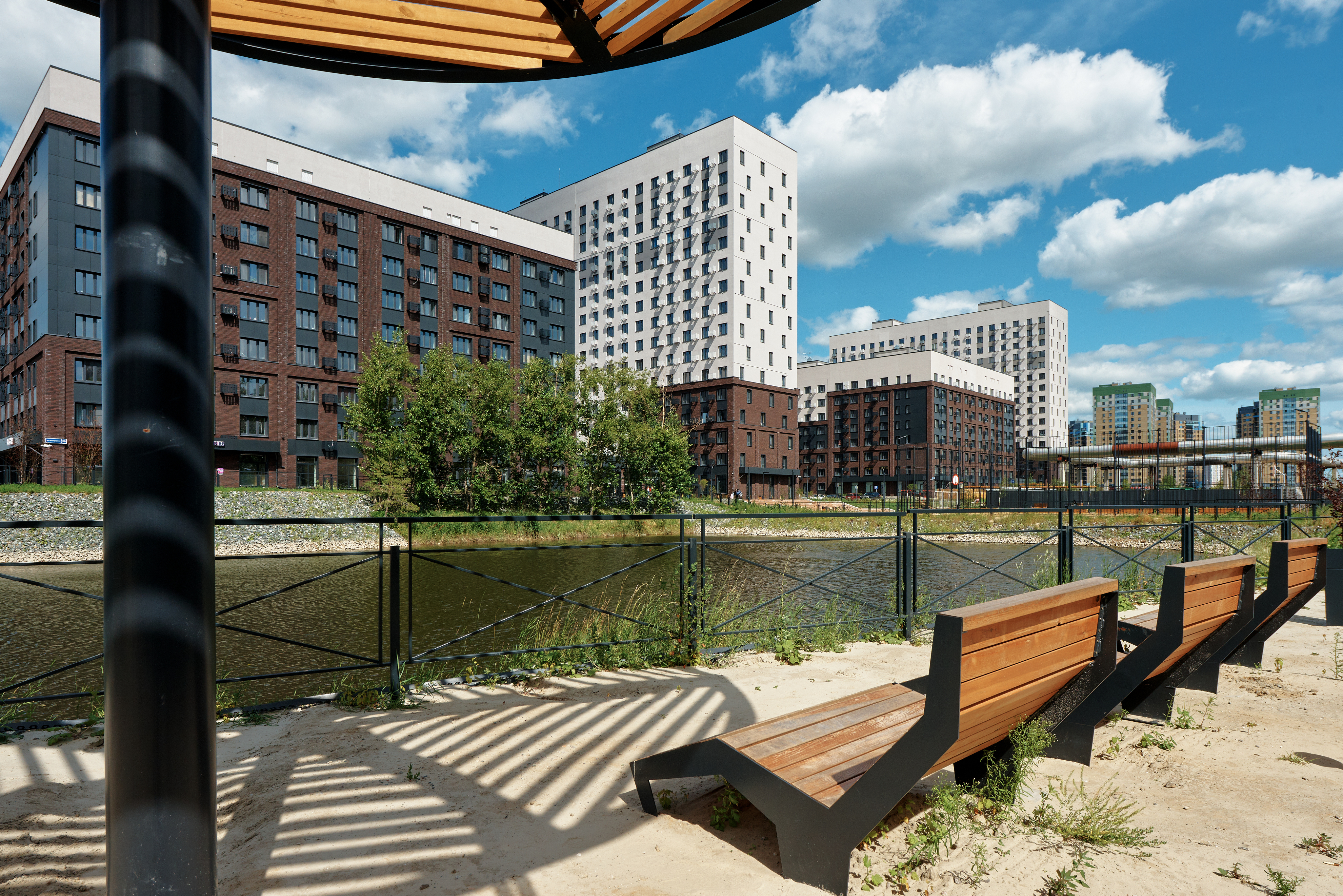 Его просто почувствовать в окружении деревьев, водоёмов и фасадов с плиткой под клинкерный кирпич.