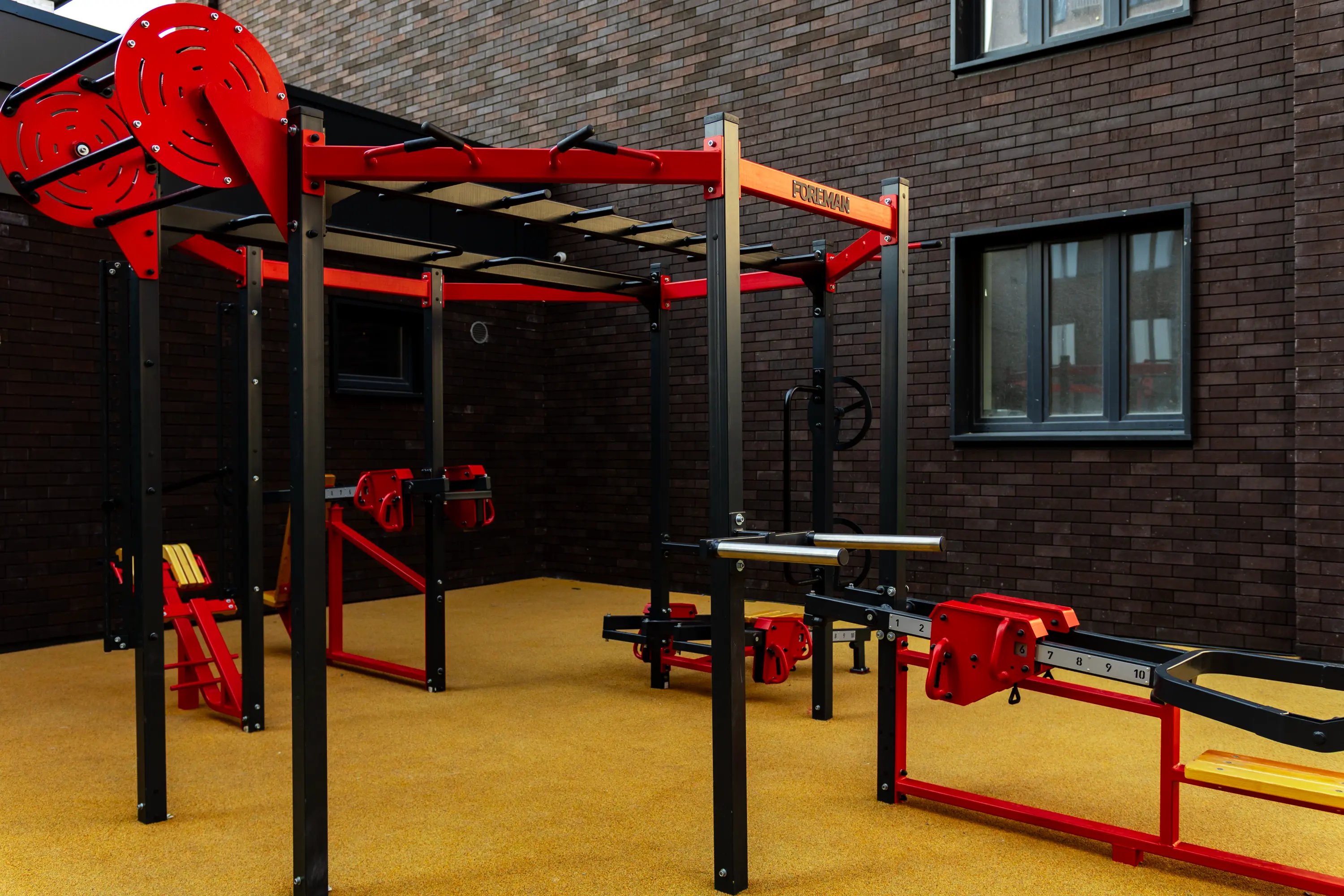 В нём тренажёры для работы с собственным весом на разные группы мышц. Тренировки на них хорошо развивают выносливость, мобильность и координацию.
